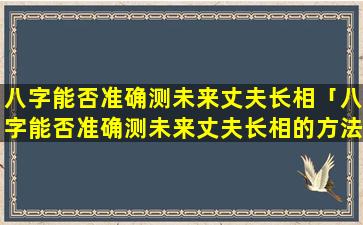 八 🐠 字无法 🐘 准确预测未来丈夫的长 🌹 相。