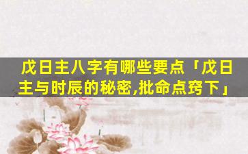 戊日主 🌹 与 🦋 时辰 🦅 的秘密