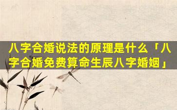八字合婚说法的 🌳 原理主要基于以下三个方面 🐛 :