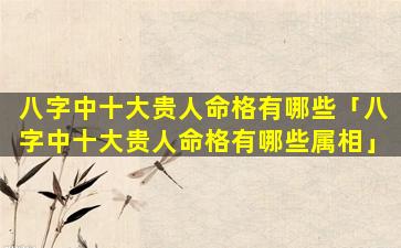 八字中十 🌸 大 🐧 贵人 🦢 命格