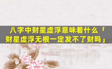 在八字命理中,财,星,虚浮无根是指财星在四柱中出现但却没有生 🐠 扶处于孤立无依的状态。这,种,情。况下财 🐛 星力量较弱难以发挥其聚财的作用