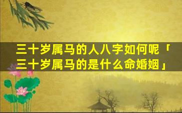 30岁属马 🦄 人的 🐡 八字 🌴 特点: