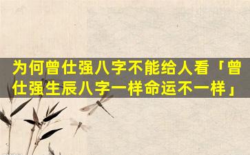 曾教授认为,生,辰八字只是先天因素而上述后天 🌼 因素会对一个人的命运产生更大的影响因 🐠 。此,即,使生辰八字。相同但人生经历和结局可能会截然不同