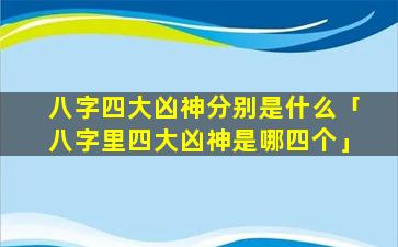 在八字命理学中,四大 🪴 凶神指 🐈 :