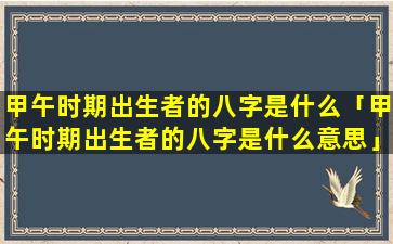 甲午年出生 🌴 者的 🐡 八字 💐 为: