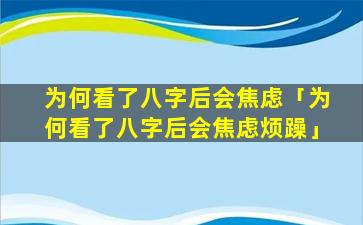 看了八字 🐯 后感到焦虑的原因可能包括: