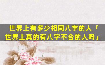 考虑到人口数量庞大,以,及八字中还会考 ☘ 虑性别和出生 🐦 地等因素实际上拥 🌹 有相同八字的人极少。