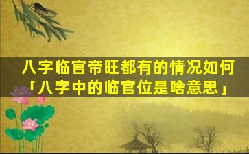“八字 🦋 临 🐎 官帝 🦈 旺”含义: