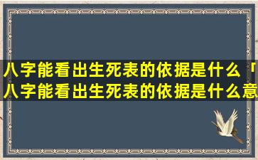 八字 🌹 无 🦋 法看出生死表八字。仅用于预测一个人性格、运势 🕸 等方面的吉凶祸福,而无法。准确预测死亡时间