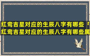 红鸾星主 🐡 婚姻 🐳 喜庆,代表 🕸 恋爱结婚。以下生辰八字属相对应红鸾星: