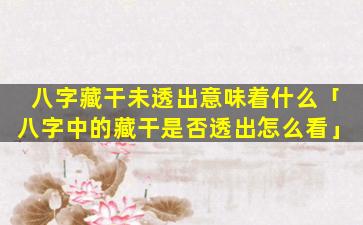 具体八字藏干未透出 🦟 的含义,还需 💐 要根据整个八字格局、日、主,旺衰五行生克制化等因 🐼 素综合分析不能一概而论。