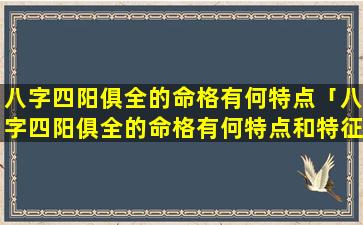八字四阳俱全的命 🌵 格特点和特征