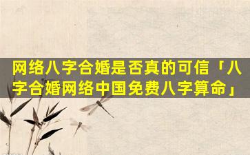网络 🐴 八字合婚的 🐒 可信 🦉 性
