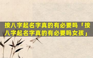 是 🦊 否需要按八 🦍 字起名字因人而异,没有绝对必要。