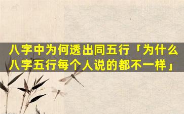 八字中透出同五 🐘 行主要有 🌹 以下几个 🦁 原因: