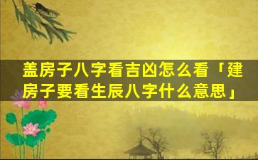盖房 🐕 子八字看吉凶的 🦍 好 🦉 坏
