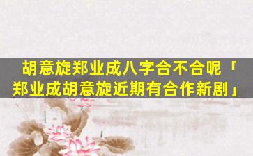 郑业成 🌹 和胡意旋是合作过的演 🐈 员 🦉 。
