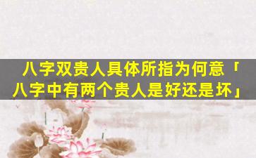 八字 ☘ 带双贵人 🌷 的意 🦟 义