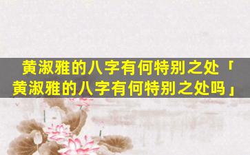 特点:黄淑雅的 🕸 八字有以 🌷 下特点: