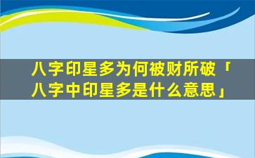 印星 🦁 多为何 🐶 易 🐋 被财破