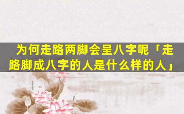 “八字脚”,也 ☘ ,称为外八字是指 🐋 走路时双脚足尖向外分开的现象。其主要原因有 💐 :