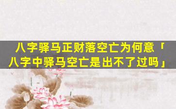 综合来看如果八字中驿马正 🐼 财同时落入空 🍀 亡,则 🐵 表示: