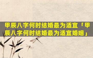 根据您的八字“甲辰 🪴 ”,无法判断何时结婚最为适宜。因为还需要年、月、日时、等。其 🐋 他信息来进 🕷 行综合分析