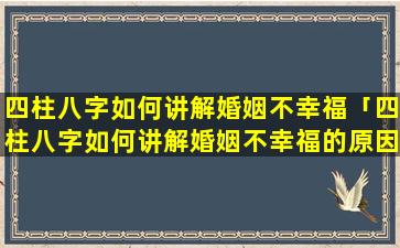 四柱八字中 🦟 婚 🐟 姻不幸 💮 福的原因