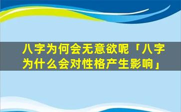 意欲是人的一种心理状态,受,多种因素影响如遗传、环、境、教育 🌺 个人经历等。八。字并不能反映或预测一个人的 🕸 意欲