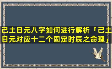 己土日元 🦁 对十二个固定时辰的命 🍁 理
