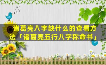 诸葛 🦢 亮五 🌴 行 🐟 八字称命书