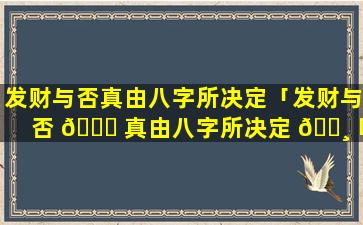 八字看发财的 🍁 可能性千万,需要综合考虑以下几个 🌼 因素 🍀 :