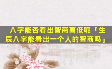 八字命理中没有明确的“智商”概念,因此无法 🐯 直接从八字推断智商高低。