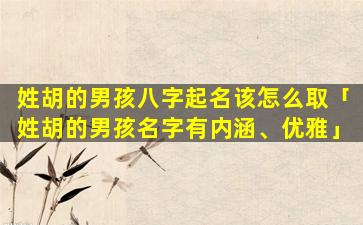对于姓胡的男孩,属,虎五行属木。因,此可选用带有寅虎、山、林、等,字。符合 🌷 生肖宜用字