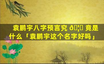 袁鹏宇是一个中国研究命理学的学者,他,提出了一个以八字为基础的预言系统称为袁 🦟 鹏宇八字预 🐈 言“”。