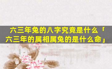 无法根据提 🦈 供的描述确定 "六 🌼 三年兔的八 🐬 字"。