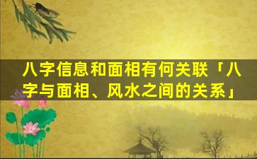 八字、面相和 🌵 风水之间 🦟 存在如下关系: