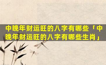财运旺 🐱 盛的 🕊 中晚年八字生肖