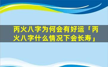 丙火八字不一 🐈 定会有好运好,坏 🦢 与否 🦅 需具体分析八字格局。