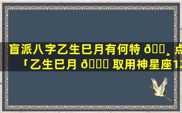 乙生巳月盲派八字特 🌴 点: