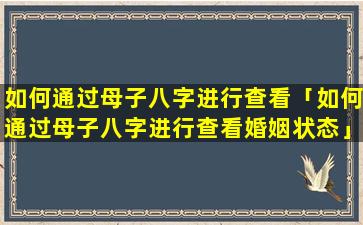 如何通过母子八 🦆 字 🐠 查看婚姻状况