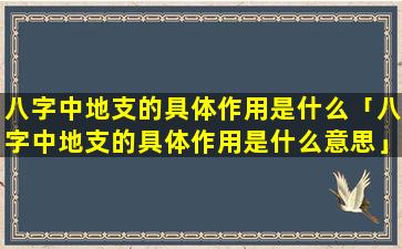 地支在八字中 🐡 具有多重 🐈 作用,包括: