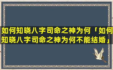 分析八字 🦆 司命之神不能结婚 🐠 的原因需要考虑以下几个方面: