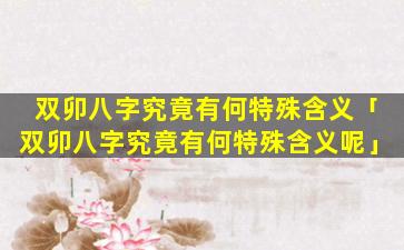 双 🐳 卯八字的特殊含义