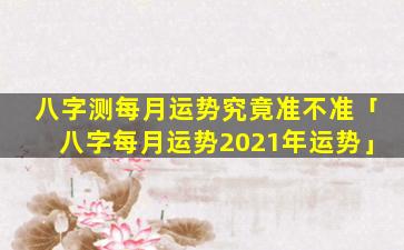 八字测算是一种传统的中式占卜方法,以,个人的出生日 🐒 期和时间为基础预测未来的运势。对,于八字测。每,月,运势的准确性目前尚未有科学的实证研究结论不过根据一些个人的经验和坊间流传存在以下不同的观点: