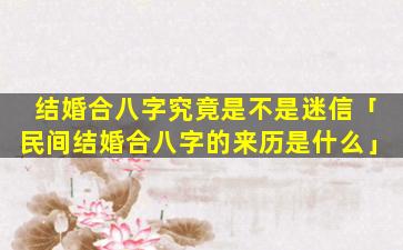 结婚合八字被认为可以预测婚姻的吉凶,但它并不是科学依据它。更,多。地是一种文化习俗寄托了人们对婚姻幸福的期 ☘ 盼