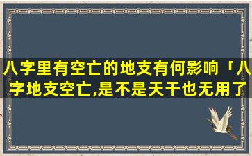 空 🐅 亡是指八字中某个地支在四柱中没有相应的天干与之相合 🌹 有 🐞 空亡的地支。会对命主产生一定的影响:
