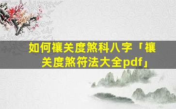 如 🐺 何禳解关煞科八字?