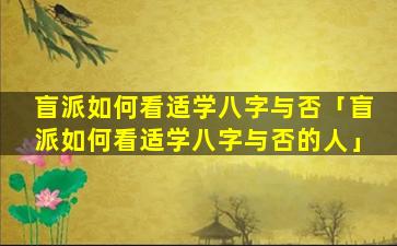 盲 🦈 派对 🌲 适学八字的看 🐯 法