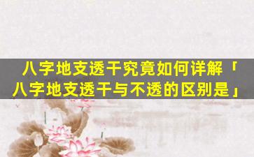 地支透干在八字命理分析中是 🌳 一个重 ☘ 要的因素,通,过对地支透 🐠 干的深入理解可以更加精准地预测和把握命运。